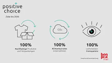 Im Zeitraum von 2006 bis 2020 konnte bonprix seine CO2-Emissionen bereits um 55 Prozent reduzieren, bis 2025 soll eine weitere Reduktion um 40 Prozent gegenüber 2018 als Basisjahr erreicht werden. Die vollständige Klimaneutralität – von der Beschaffung über alle Standorte und Rechenzentren bis hin zur Distribution – wird 2030 angestrebt. Im gleichen Zeitraum sollen sämtliche schädlichen Chemikalien aus der Produktion ausgeschlossen sowie Wasserrisiken ermittelt und gezielt gemindert werden.