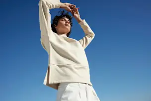 Alle kreislauffähigen Produkte von bonprix sind mit dem eigens entwickelten Label „circular collection – designed to be recycled“ gekennzeichnet, das einprägsam die Recycelfähigkeit visuell und textlich veranschaulicht. So erkennen Kund*innen – auch nach mehrmaligem Tragen – die Kreislauffähigkeit ihrer Kleidung und bonprix trägt zu einem wachsenden Bewusstsein für zirkuläres Design bei. Materialien und Verarbeitung