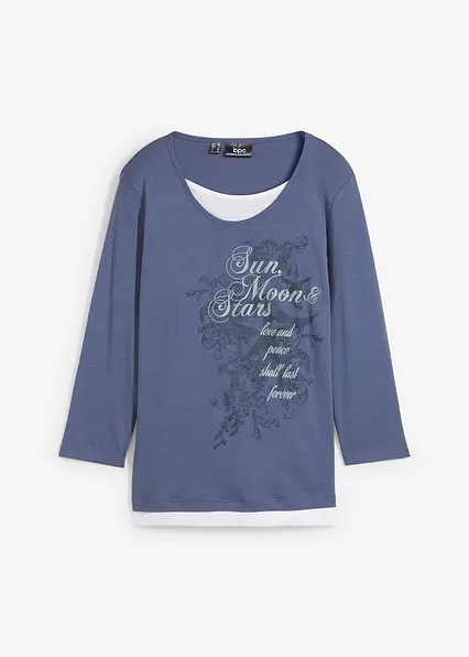 Bequemes 2-in-1-Shirt mit Druck und 3/4 Arme aus Baumwolle