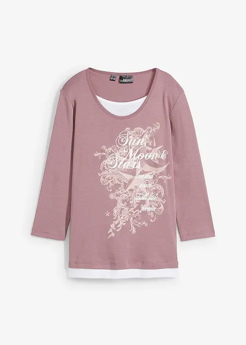 Bequemes 2-in-1-Shirt mit Druck und 3/4 Arme aus Baumwolle