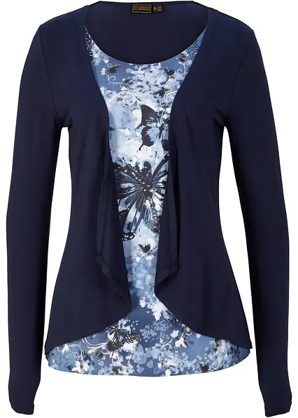 2 in 1 Shirt bedruckt in blau von vorne - bonprix
