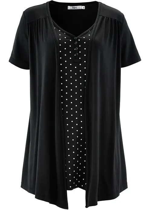 2 in 1 Shirt mit V-Ausschnitt, kurzarm in schwarz im Look von vorne (Totalaufnahme) - bonprix