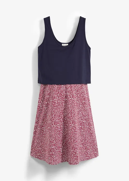 Weiches Jerseykleid aus Bio-Baumwolle mit Stretch für einen hohen Tragekomfort. Mit einem tiefen Rundhalsausschnitt und bequemen Tanktop-Trägern. Das Oberteil ist doppellagig verarbeitet und verbirgt eine praktische Stillfunktion. Das Design mit den doppelten Lagen hilft Wärmeverlust zu vermeiden und ermöglicht ein angenehmes und diskretes Stillen für Mutter und Kind. Das bequeme Sommerkleid hat eine knieumspielende Länge und einen bedruckten Rock in A-Linie, für eine schmeichelhafte Silhouette.