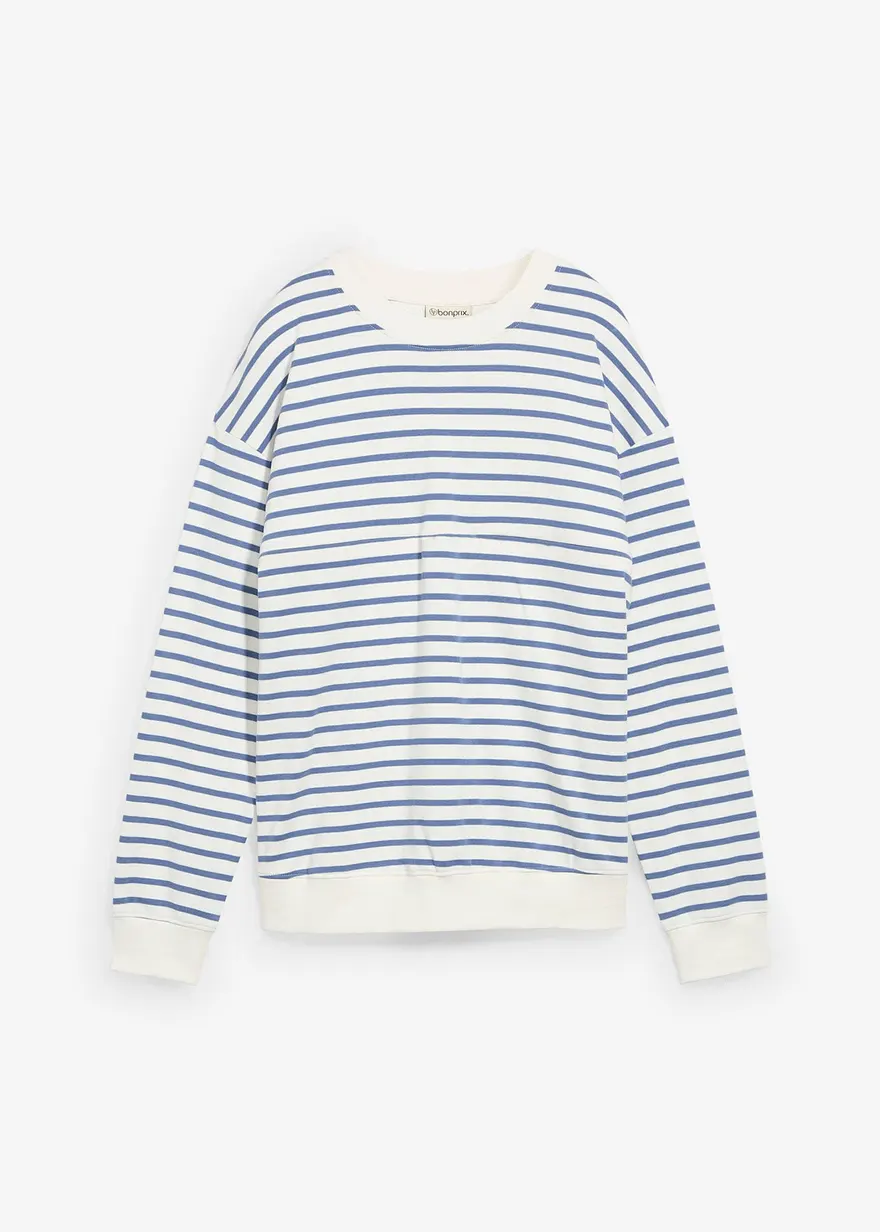 Gestreiftes Umstandsshirt aus weichem, dicht gewebtem Jersey aus Bio-Baumwolle mit äußerst diskreter Stillfunktion: Reißverschlüsse auf beiden Seiten ermöglichen ein komfortables und unkompliziertes Stillen für Mutter und Kind.