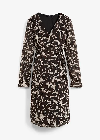 Langärmeliges Kleid aus Chiffon mit blickdichtem Futter. Mit Wickelausschnitt und einem schmalen, abnehmbaren Bindeband. Dieses Kleid kann sowohl während der Schwangerschaft als auch in der anschließenden Stillzeit getragen werden.