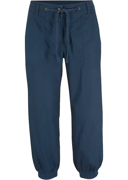 3/4 Hose aus Baumwoll-Leinen-Mix in blau im Look von vorne (Totalaufnahme) - bonprix