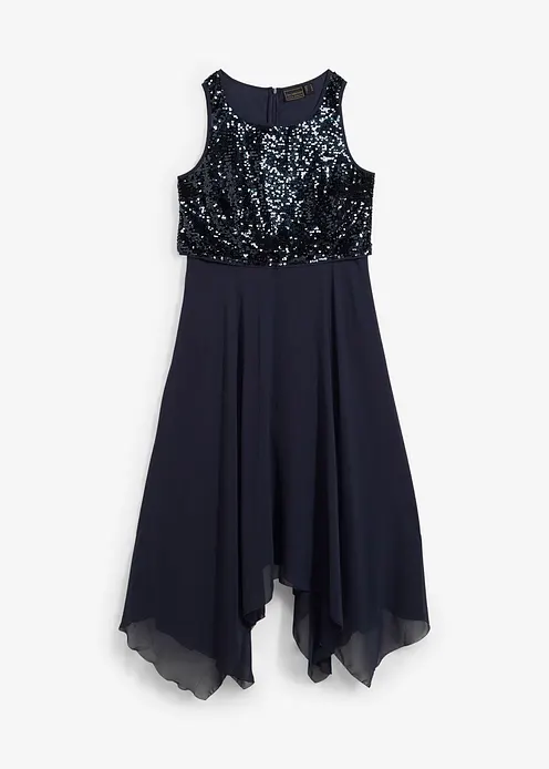 Edles Abendkleid mit Pailletten-Oberteil und schwingendem Zipfelsaum