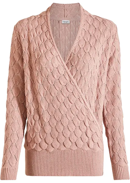 Kuscheliger Ajour-Pullover in modischer Wickeloptik.
