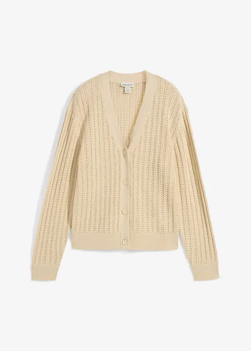 Ideal für den Sommer ist diese Ajour-Strickjacke mit Leinenanteil
