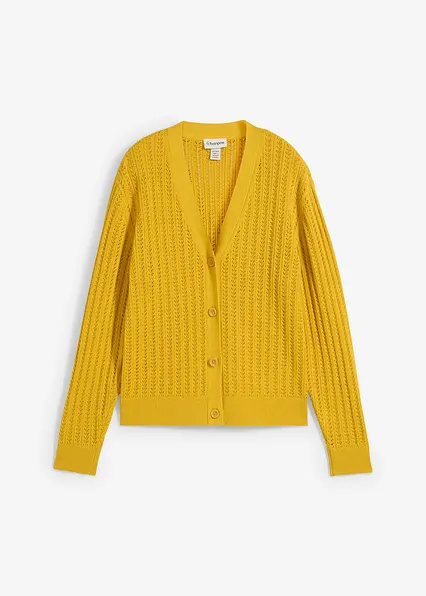 Ajour-Strickjacke mit Leinenanteil in gelb von vorne - bonprix