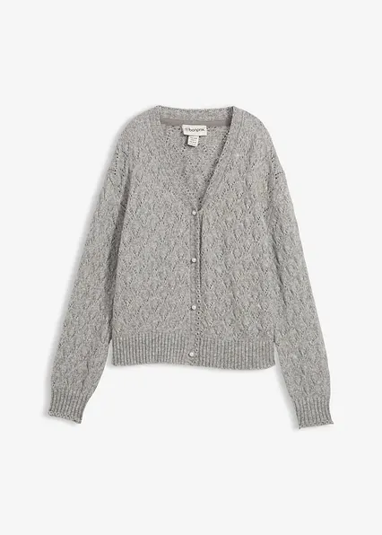 Ajour-Strickjacke mit hochwertigen Woll-Anteil