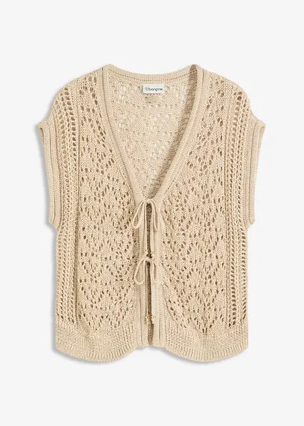 Ajour-Strickweste mit Viskose und Glitzergarn