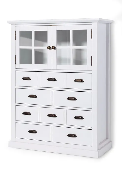 Material:Korpus: MDF, Einlegeböden: 100% MDF, Beine: 100% Kiefer (Monterey-Kiefer), Schublade: 100% MDF, Türen: 100% Kiefer (Monterey-Kiefer)
