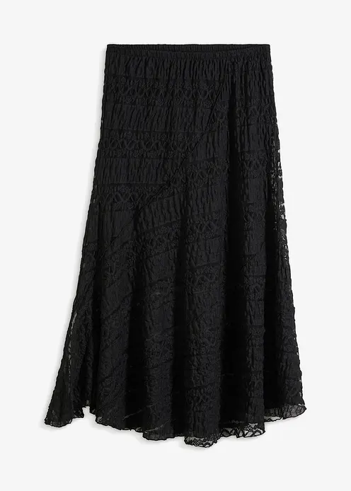 asymmetrischer Midi Rock aus Spitze in schwarz von vorne - bonprix