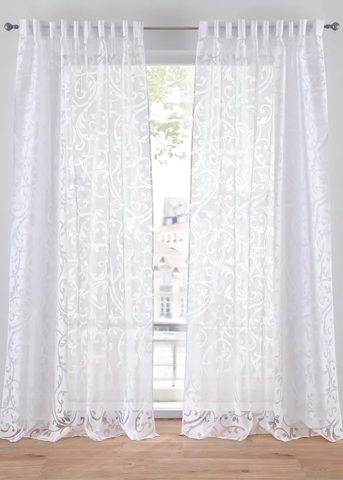 Die Gardine ist leichter Sichtschutz und Dekoration zugleich. Das schlicht-elegante Ranken-Muster der Ausbrenner-Gardine schafft einen tollen, stilvollen Look in Deinem Zuhause. Die Musterung ist im Ausbrenner-Verfahren hergestellt, d.h. es gibt transparente und blickdichte Stoffbereiche. Dadurch entsteht ein schöner Lichteinfall und die Musterung ist auf beiden Seiten sichtbar, sodass Dein Fenster auch von außen besonders edel wirkt. Sie findet ihren Platz in vielen Räumlichkeiten und kann mit vielen Einrichtungsstilen kombiniert werden.