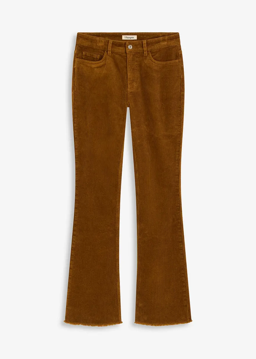 Lässige Cordhose mit ausgestelltem Bein und offenem Saum