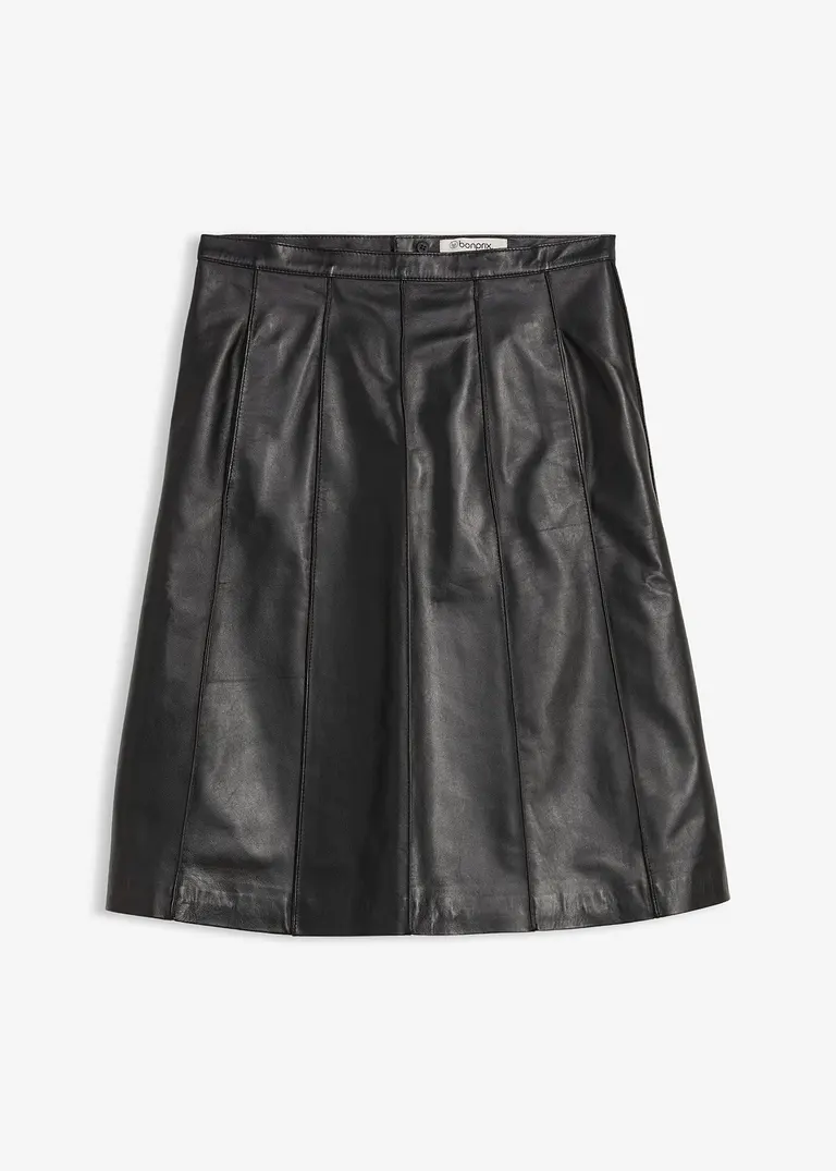 Trendiger Ausgestellter Lederrock aus Lammnappa, verziert mit Biesen