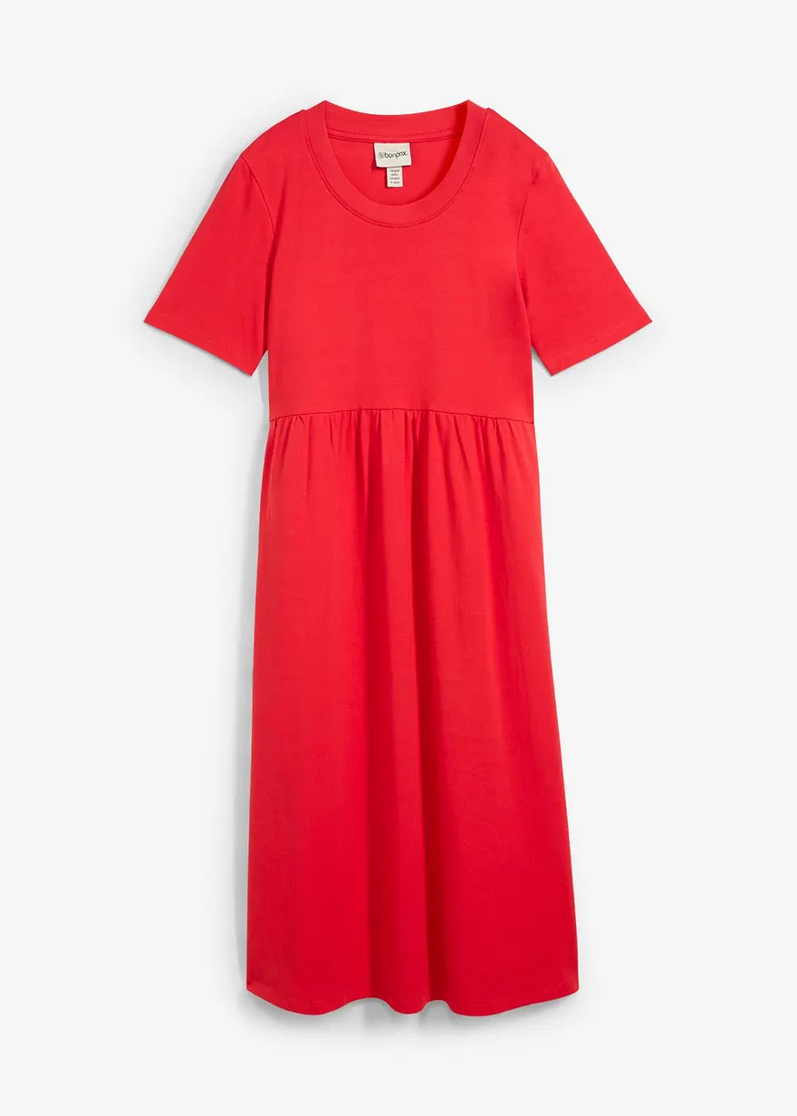 Ausgestelltes Jerseykleid mit seitlichem Schlitz, hohem Rundhals und Halbarm