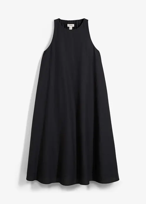 Midikleid in lockerer Passform mit einem elastischen Ausschnitt sowie Seitennahttaschen