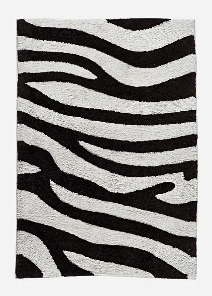 Getuftete Badematte, waschbar 30°C, Rückseite rutschhemmend, Fußbodenheizung geeignet.
