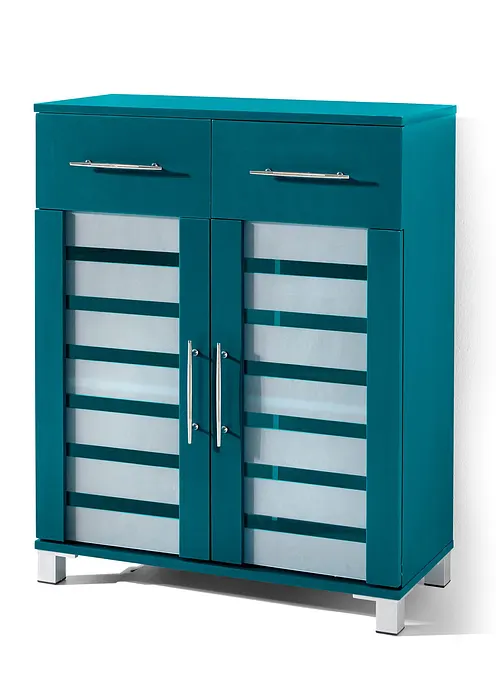Beeindruckt durch sein modernes Design: der geradlinige Schrank "Ted" mit toller Aufteilung. Er bringt ein frisches Flair in jedes Bad und ist mit seinen raffinierten Glaseinsätzen in den Türen ein absoluter Hingucker. Die Glaselemente wurden teilweise gefrostet – die Folge ist ein toller Streifeneffekt. Hinter jeder der 2 Türen findet sich ein Einlegeboden und somit viel Stauraum für die Unterbringung von Handtüchern, Cremetiegeln und vielem mehr. Auch die 2 Schubkästen im oberen Bereich bieten Platz für weitere, kleinere Utensilien. Sorgt für ein schickes Ambiente im Bad: der moderne Schrank "Ted".