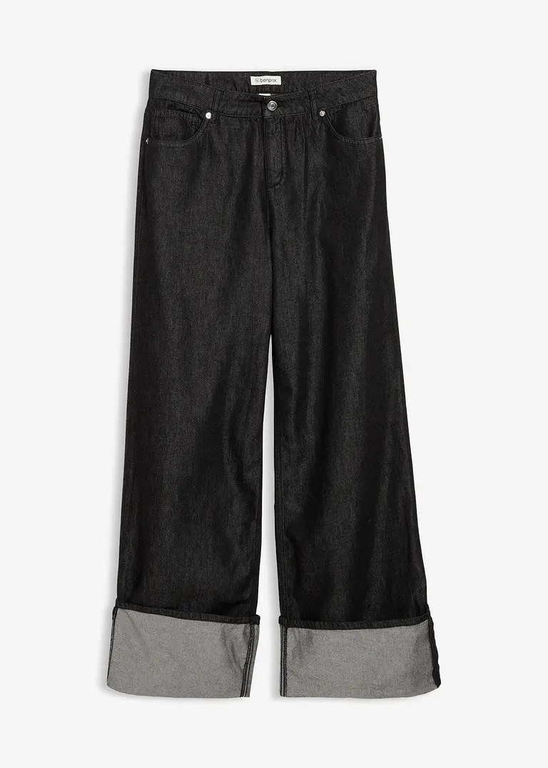 Baggy-Jeans Mid Waist in schwarz von vorne - bonprix