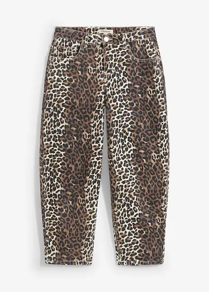 Weite Barrel-Jeans mit Leopardenmuster, Mid Waist