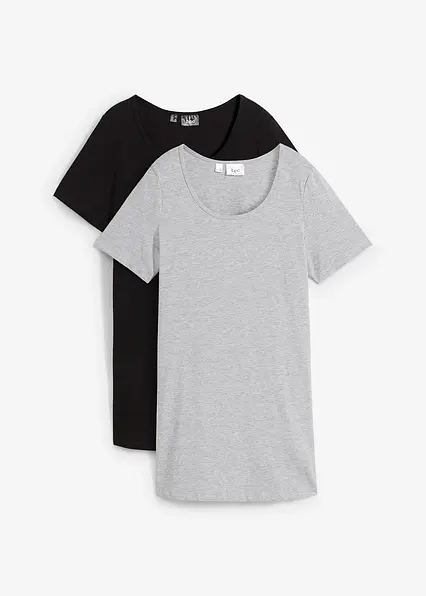 Vielseitig kombinierbares Basic-Long T-Shirt im 2er-Pack