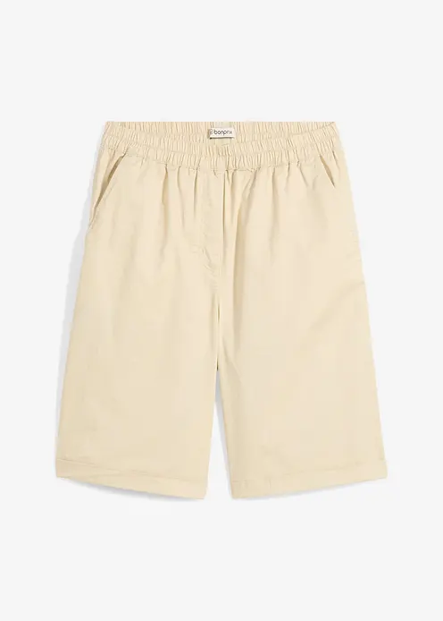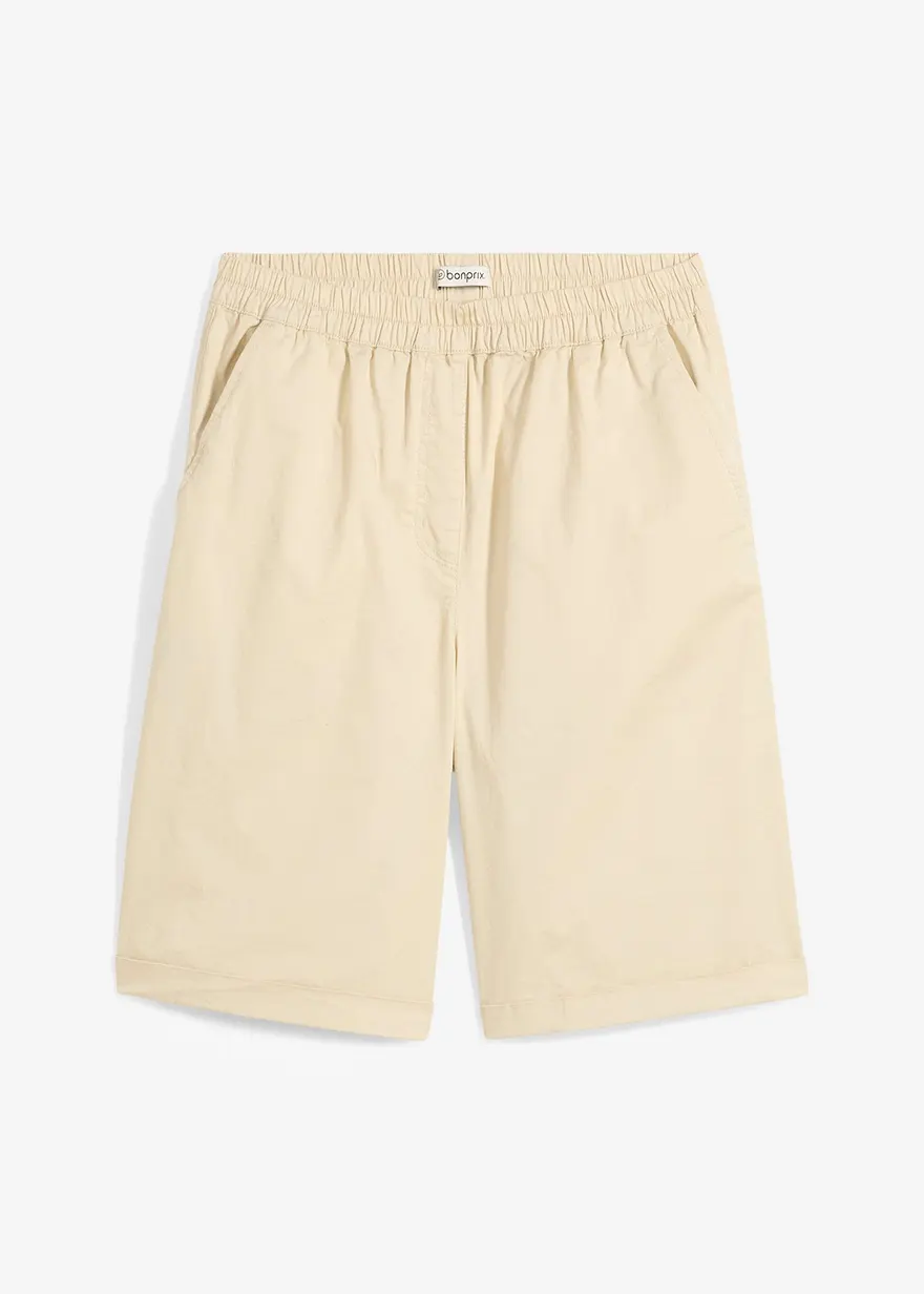 Bermuda mit hochgeschnittenem, elastischem Bund und seitlichen Eingriffstaschen.