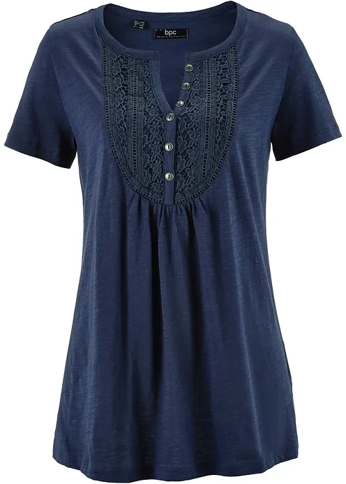 Schönes Flammgarn-Shirt mit ansprechender Spitze und Henley-Kragen