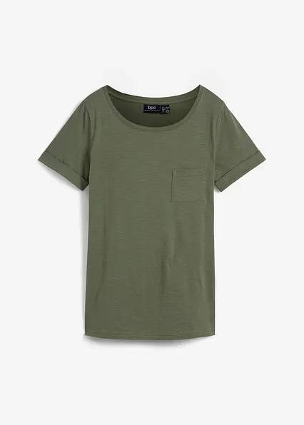 Figurgünstiges Baumwoll Flammgarn T-Shirt mit dekorativer Brusttasche