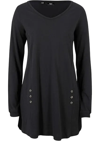 Figurschmeichelndes Longshirt in A-Linie mit dekorativen Knöpfen
