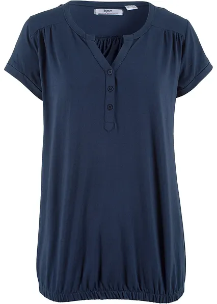Passformvorteile:Saum mit Gummizug und Raffung, streckender V-Ausschnitt