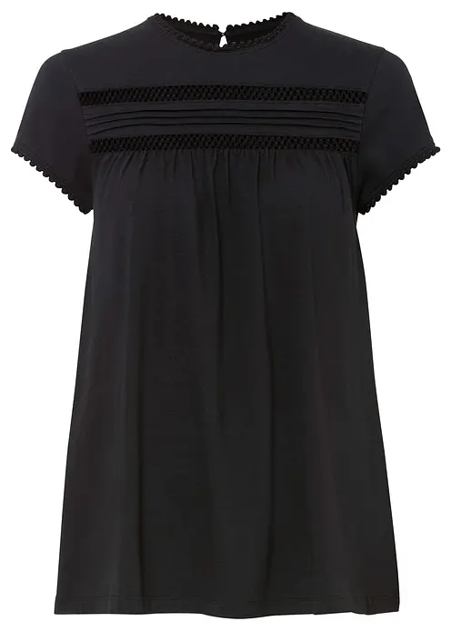 Modernes Baumwollshirt mit Spitzeneinsatz und kurzem Arm