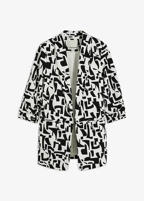 graphisch bedruckter Longblazer mit gerafften 3/4-Ärmeln