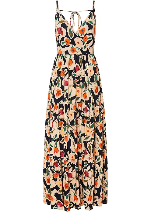 sommerliches Maxikleid mit tollem Druck und tiefem V-Ausschnitt vorne und hinten.