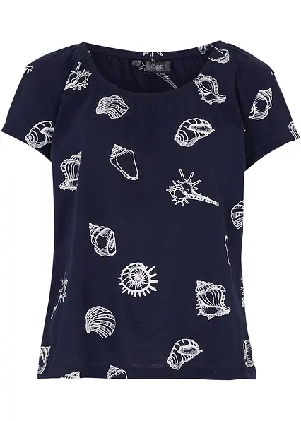 Lockeres Carmen-Shirt mit Muschel-Druck