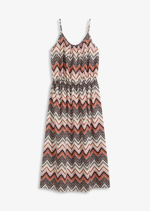 modisch bedrucktes Jerseykleid in Midilänge mit verstellbaren Spaghetti-Trägern