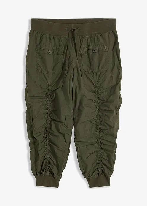 Ein echtes Highlight für alle Girls, die sich gerne praktisch und cool kleiden, ist diese bequeme Capri-Hose.Die stylishe 3/4-Hose ist am Bund und an den Beinen mit elastischen Rippbündchen gestaltet. Die Ziernaht mit Raffungen am Bein und die zwei aufgesetzten Taschen vorne betonen den angesagten Look der Hose.