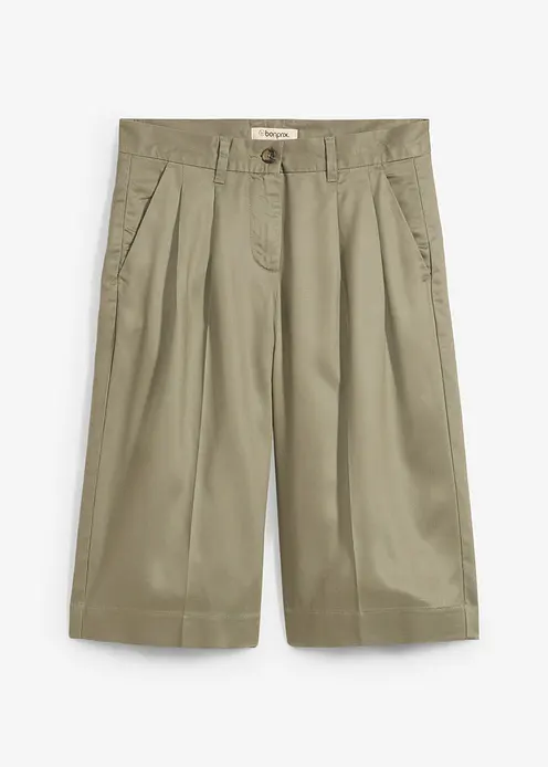 Knielange Bermuda mit hohem Bund mit Seitentaschen, Gürtelschlaufen und Abnähern sowie Bügelfalten vorne