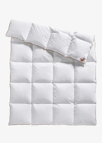 Premium Bettdecke Daune in mittlerer Wärme-Qualität. Die Daunenbettdecke ist kuschelig und bietet dabei die gewünschte Wärme. Die Steppung verhindert ein Verrutschen der Füllungen. Die hochwertige Decke ist mit einer Biese ausgestattet und durch Nomite auch für Allergiker bestens geeignet.