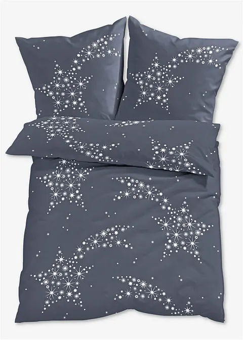 Ideal zum Wohlfühlen, Kuscheln und Schlafen: die pflegeleichte Bettwäsche "Sternschnuppe". Das ansprechende Sternschnuppen-Motiv ist eine schöne Ergänzung für den Schlafraum. Der Untergrund ist unifarben, sodass die glänzenden Sterne toll zur Geltung kommen. Die hübsche Garnitur harmoniert mit verschiedenen Einrichtungsstilen und Farben.