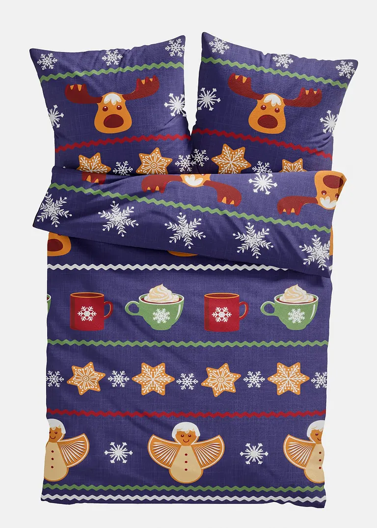 Bettwäsche mit Weihnachtsmuster in blau - bonprix