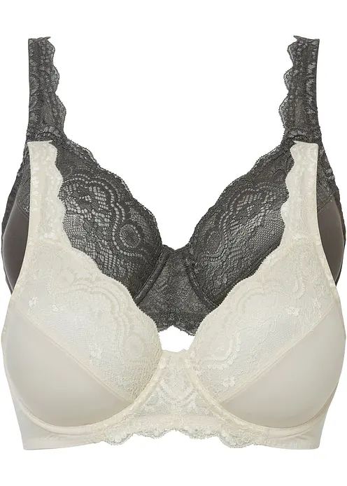 Hochwertige Spitze schmückt den attraktiven Bügel-BH. Sie ziert die obere Hälfte der Cups und verläuft harmonisch bis in die Träger. Ein tolles Basic im Doppelpack für jeden Tag.
