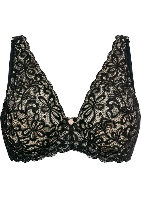 Bügel-BH mit zarter Spitze in schwarz von vorne - bonprix