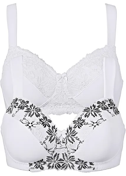 Bei diesem aparten BH ohne Bügel der Marke bpc selection ziert eine kunstvolle Stickerei den oberen Rand der Cups. Breite, gepolsterte Träger entlasten die Schultern und schneiden nicht ein. Das elastische Unterbrustgummi gibt angenehmen Halt und ein sicheres Gefühl.Der BH wird im vorteilhaften Zweierpack angeboten.