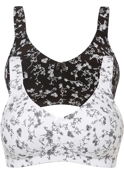 Der BH ohne Bügel bietet mit seiner schönen Bio-Baumwollqualität angenehmen Tragekomfort. Das weiche Material schmiegt sich perfekt an und die leicht gepolsterten Träger entlasten die Schulterpartie.Im attraktiven Doppelpack sind zwei BHs ohne Bügel aus der bpc collection mit einem verspielten Blumendruck enthalten. Dieser ansprechende BH vereint bequemes Tragegefühl und modisches Design.