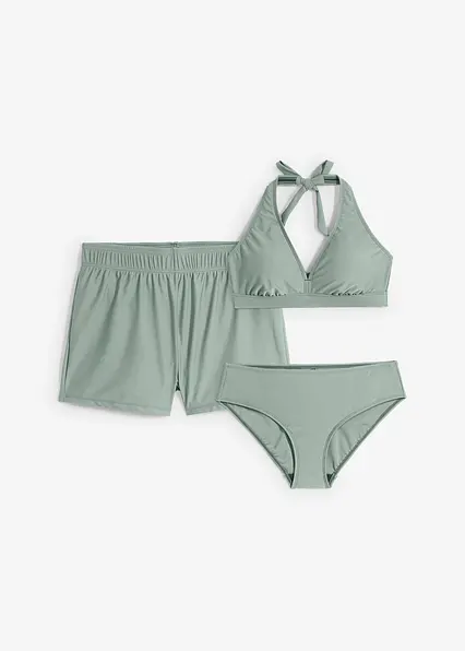 Set aus Bikinioberteil, Bikinihose und Badeshorts