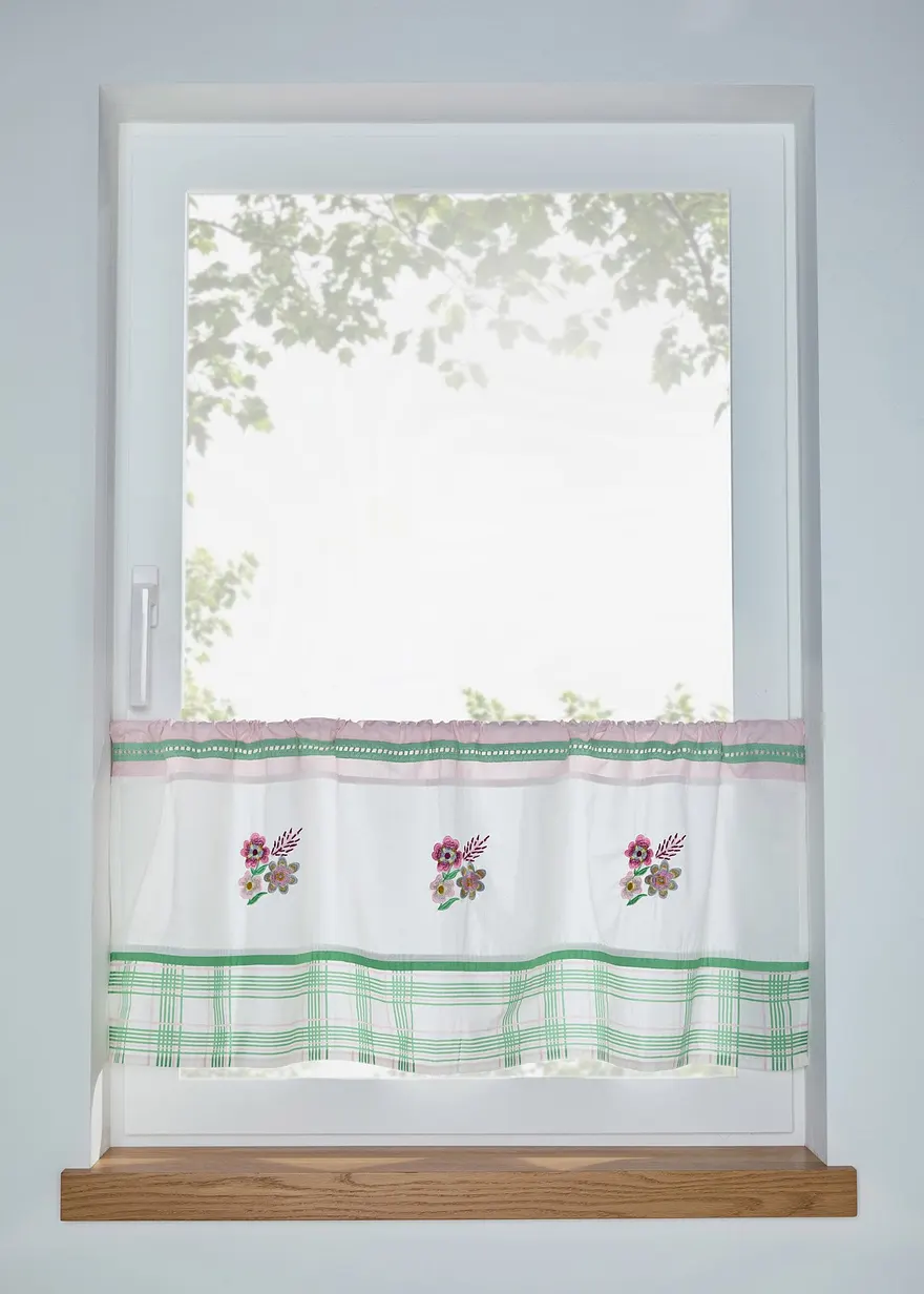 Bio Baumwoll Scheibengardine mit Stickerei