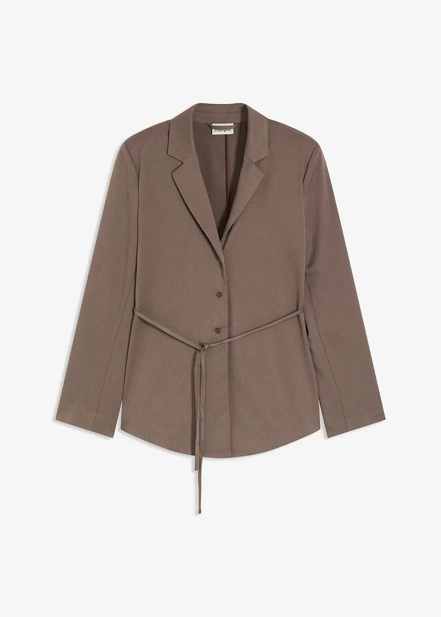 Locker fallender Blazer mit Reverkragen und Bindegürtel
